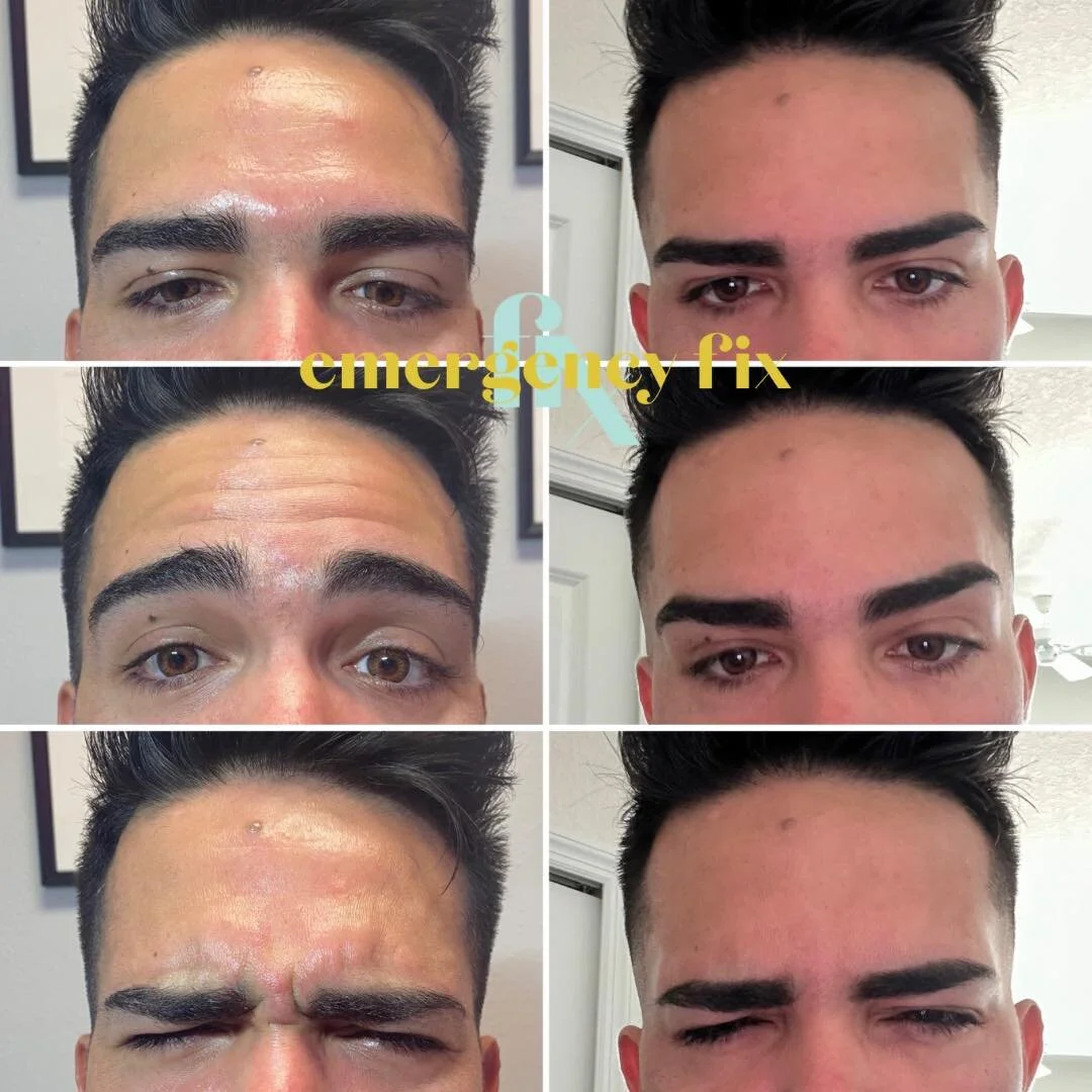 The cosmetic form of botulinum toxin, commonly referred to as "Botox”, is a popular injectable that temporarily reduces or eliminates facial fine lines and wrinkles. The most commonly treated areas are frown lines, forehead creases and crow's feet near the eyes. Several other areas have been treated such as thick bands in the neck, thick jaw muscles, lip lines and gummy smiles. Botulinum toxin is a purified substance that is derived from a bacteria. Injections of botulinum toxin block the nerve signals to the muscle in which it was injected. Without a signal, the muscle is not able to contract. The end result is diminished unwanted facial wrinkles or appearance. Emergency Fix offers the following types of botulinum toxin type A injections: Botox®, Dysport®, and Xeomin®.